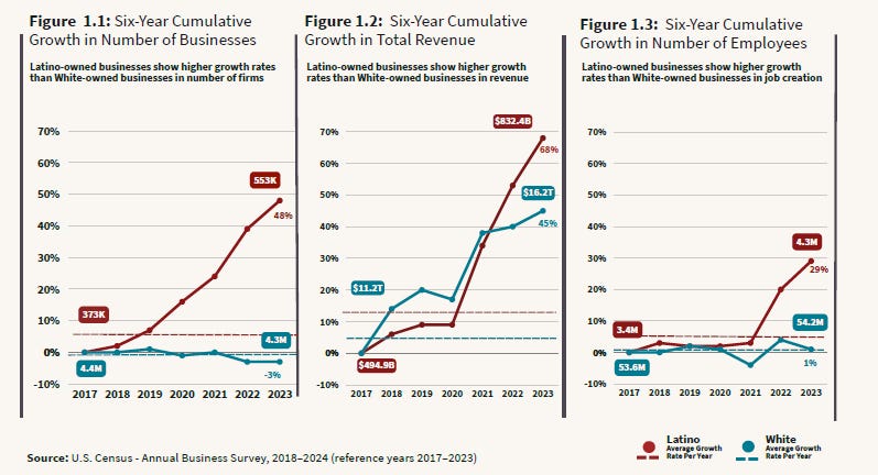 The Stanford State of Latino Entrepreneurship report makes that point in its own way. Latino-owned businesses added 180,000 net new firms between 2017 and 2023, created 976,000 jobs, and grew faster than white-owned firms across firm formation, employment, and revenue. Latino-owned businesses now account for 9.7 percent of U.S. employer firms and generate $832 billion in annual revenue. In any sane market, that kind of performance would attract more early belief than it currently does.