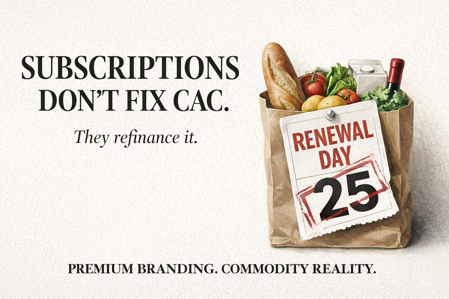 In food, subscriptions don’t create premium economics; they often force premium branding onto commodity reality.